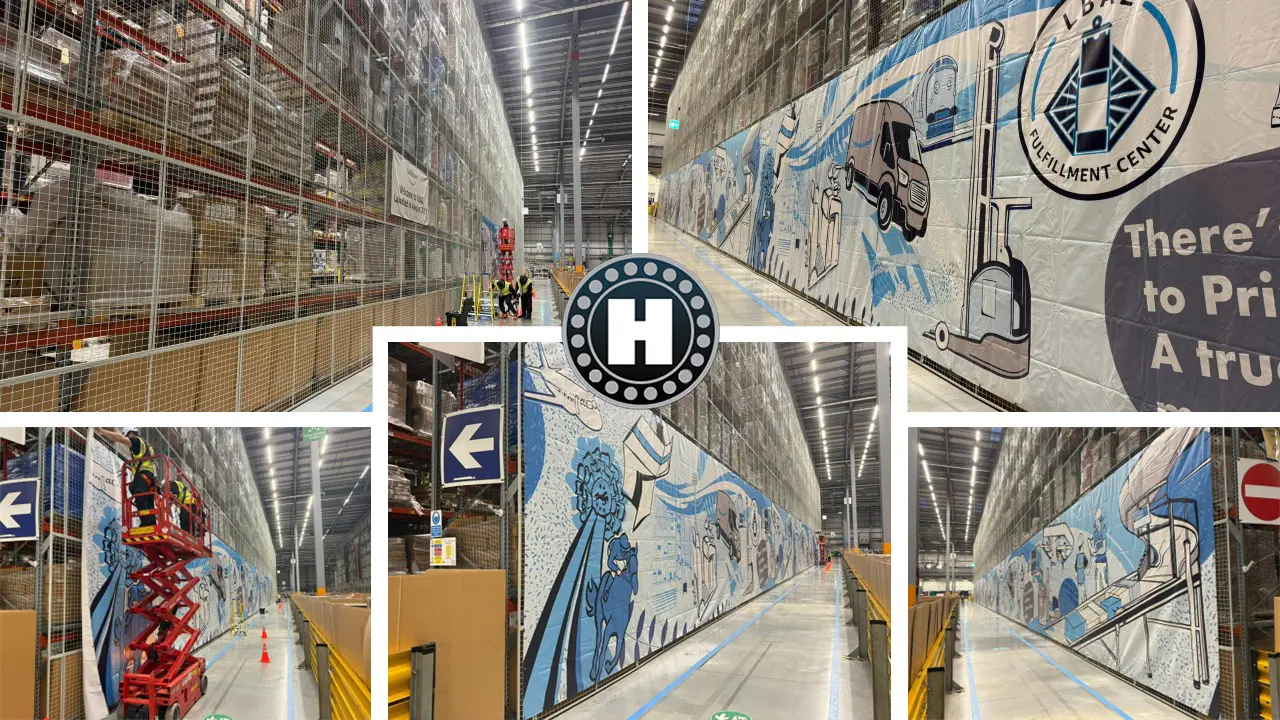 Size matters! Howcroft Group is proud to showcase the manufacture, supply, and installation of this colossal 75-meter wall mural for Amazon's LBA2 Fulfillment Center.